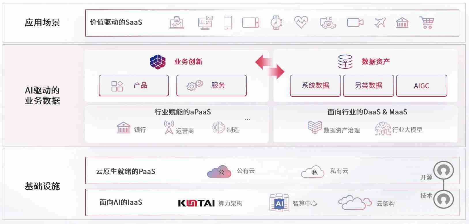 数字时代,,,围绕企业数字化转型的关键要素,,老哥网数码开创性的提出数云融合战略和技术体系框架,,,,着力在云原生、、数字原生、、、AI原生和信创产业上架构产品和服务能力,,,,为处在不同数字化转型阶段的快消零售、、、汽车、、、金融、、、、医疗、、政企、、、、教育、、、、运营商等行业客户提供泛在的敏捷IT能力和融合的数据驱动能力,,,构建跨界融合创新的数字业务场景和新业务模式,,,,助力企业级客户建立面向未来的核心能力和竞争优势,,,,全面推动社会的数字化、、智能化转型升级。。。。